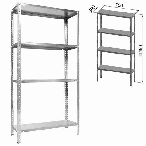 Стеллаж металлический ПРАКТИК "ES" облегченный (1450х750х300 мм), 4 полки, оцинкованная сталь, S24099033458